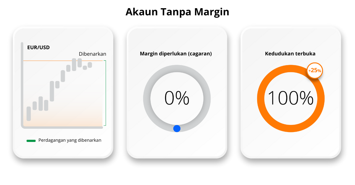 - Maksimalkan daya beli: Trading tanpa margin memungkinkan Anda untuk berdagang dengan ukuran lot yang lebih besar.